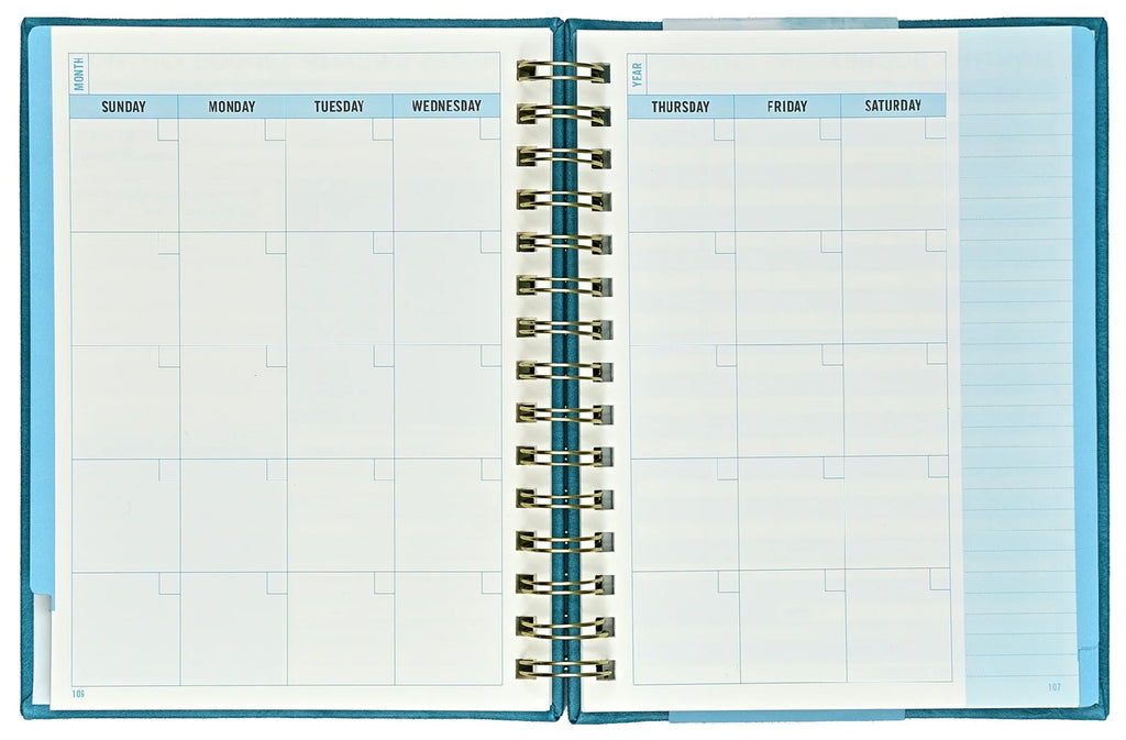 - Desk-sized planner measures 6'' wide x 8'' high.