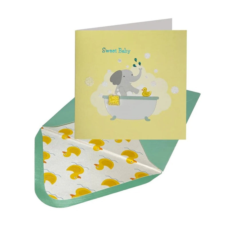 Luxury New Baby Greeting Card - Elephant in Bath Tub