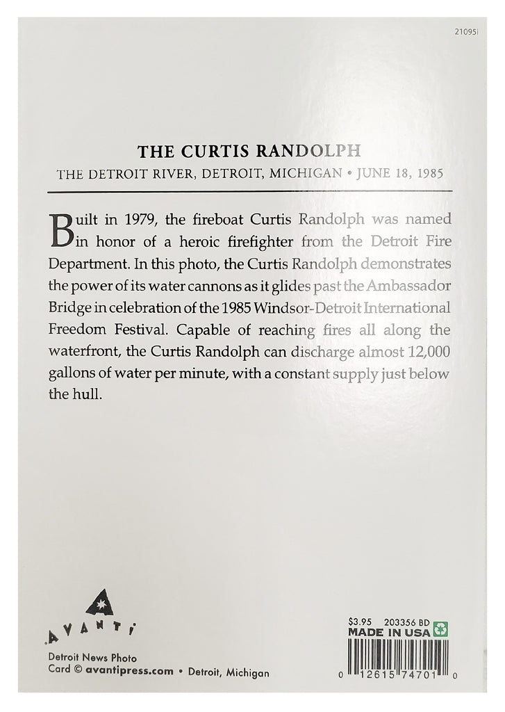 - More Info: The Curtis Randolph - The Detroit River, Detroit, Michigan - 1985. Greeting card made in the USA.