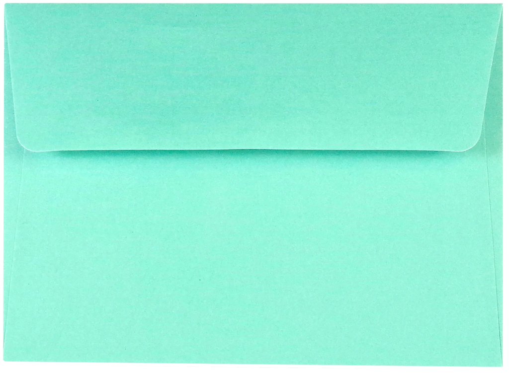 Matching mint green envelopes complete the set.