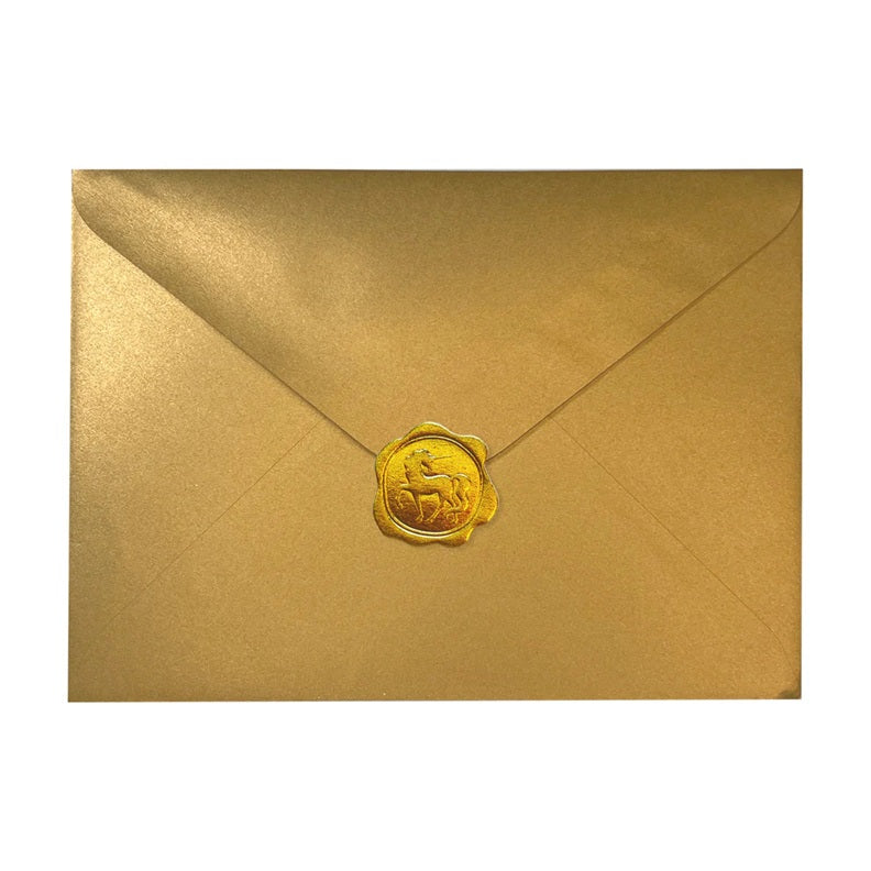 - Includes matching lined envelope with faux wax envelope sticker seal