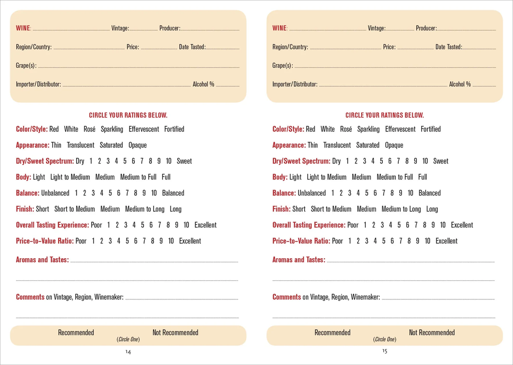 Concise information details everything you need to know to rate wines, followed by interactive fill-in pages for tasting and judging wines.
